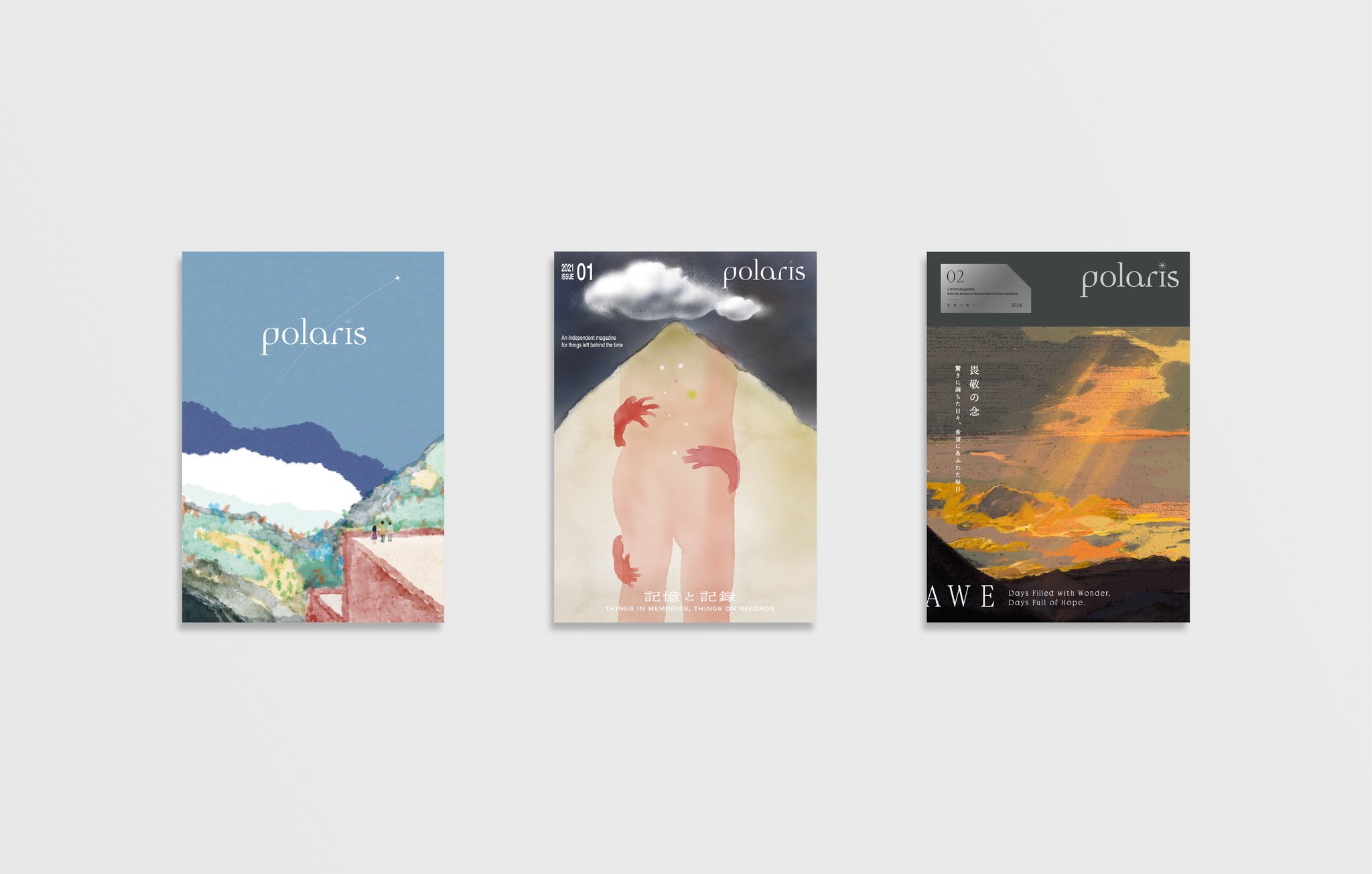 polaris Issue02『畏敬の念』。イギリスに渡って制作をし2024年に発刊をした。人々の日常に希望を創り出すクリエイター達を取材するため、欧州を中心に世界を旅した。