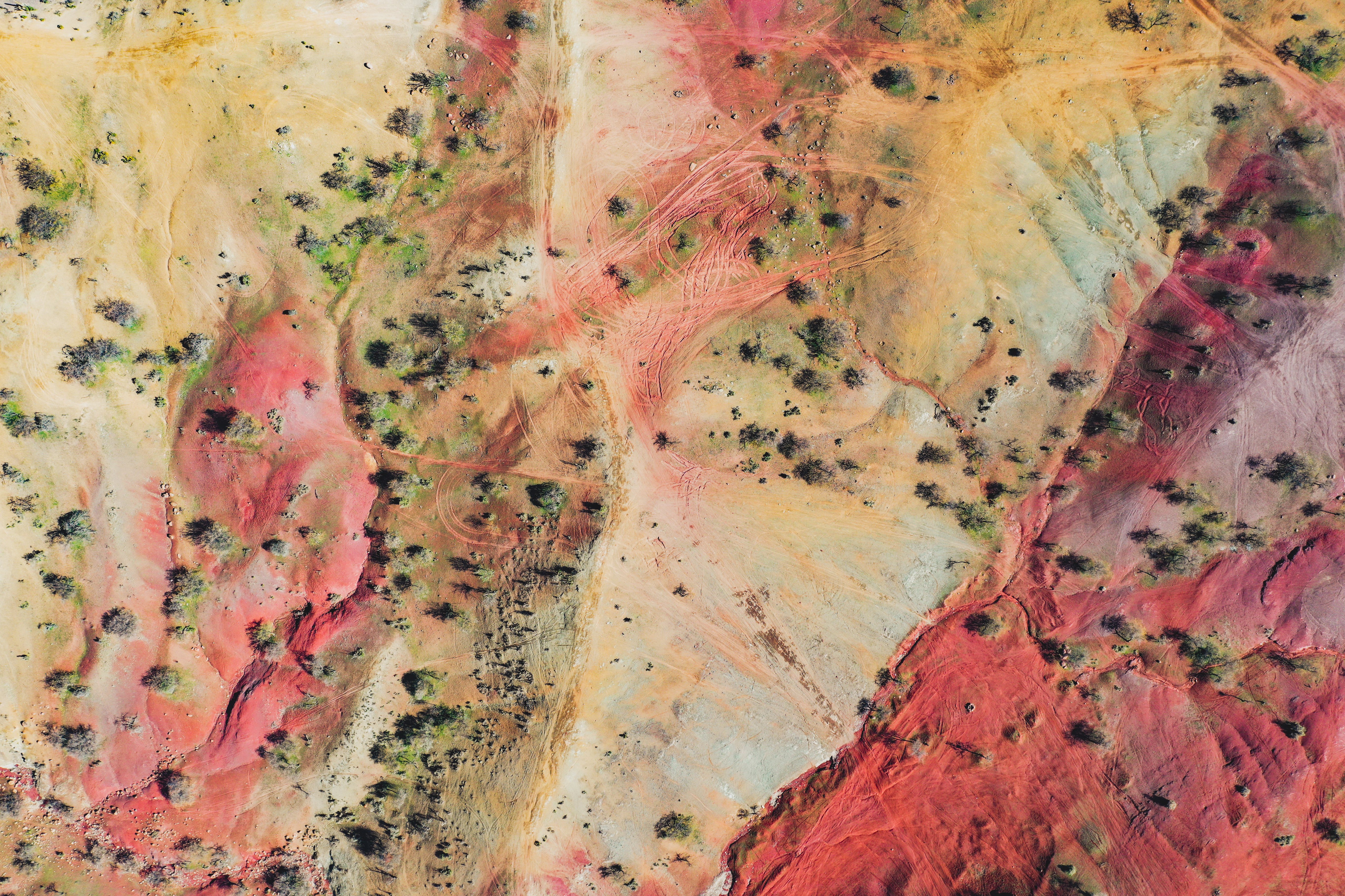チリの渓谷地域の砂漠地帯プタエンドの上空写真。Photo:Anton Strabucchi