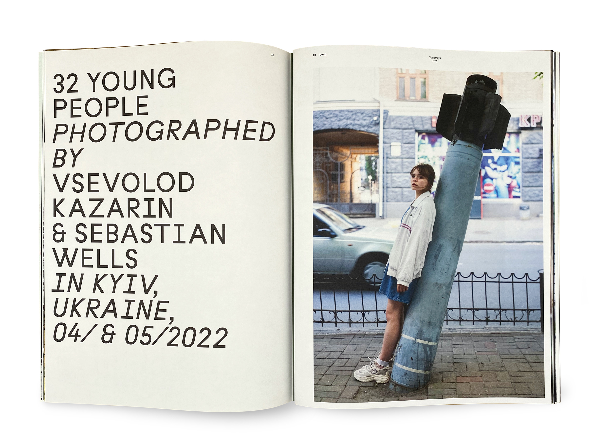 2024年発刊のIssue02『畏敬の念〜驚きに満ちた日々、希望にあふれた毎日〜』では、戦時ウクライナの現状を、若きアーティスト達のポートレート作品から伝えるインディペンデント・マガジン『solomiya』を取材した。雑誌の創刊者であるフォトグラファーのセバスティアン・ウェールズは取材のなかで、 『solomiya』のコンセプトをこう語っている。