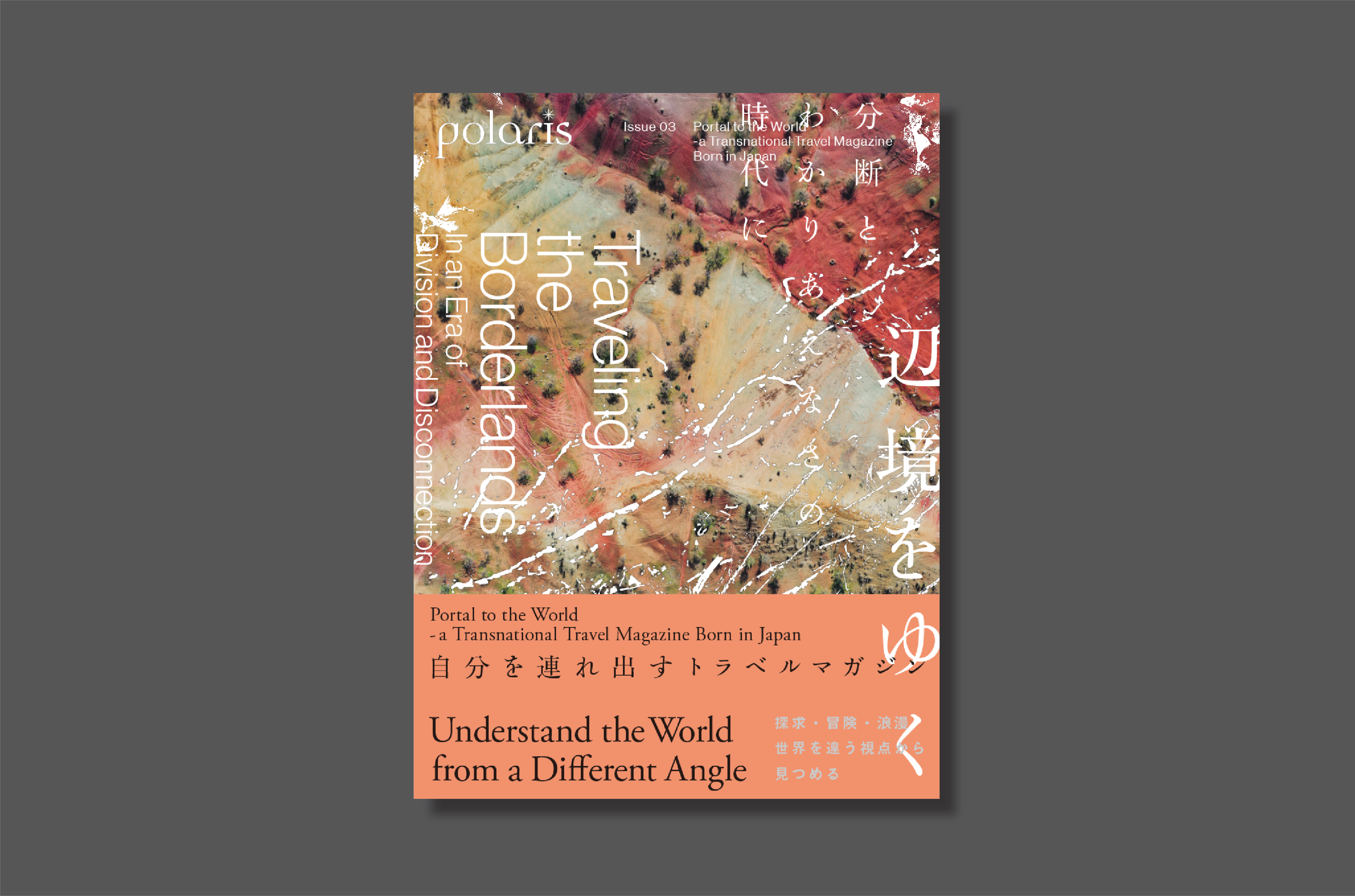 トラベル・マガジンpolaris Issue03「辺境をゆく〜分断とわかりあえなさの時代に〜」。現代社会を覆う分断の姿を見つめようと、世界各地の辺境や国境地域を旅する。日本人文化人類学者中村寛が見たアメリカ周縁の姿。カナリア諸島ゴメラ島で写真家アーノルト・スメッドが聞いた亡き先住民たちの声。チリのプタエンド砂漠で映画監督アントン・ストラバックが撮った干ばつを生きる山羊飼い達の姿。インド、ドラヴィダ族テルグ語の復興を目指すアーティストKD。岩手県早池峰山タイマグラで暮らす写真家山代生の物語。辺境には、分断にまつわる私達のアングルをわずかに、されど着実に動かすような、そんな景色と兆しが広がっていた。2025年10月発売。