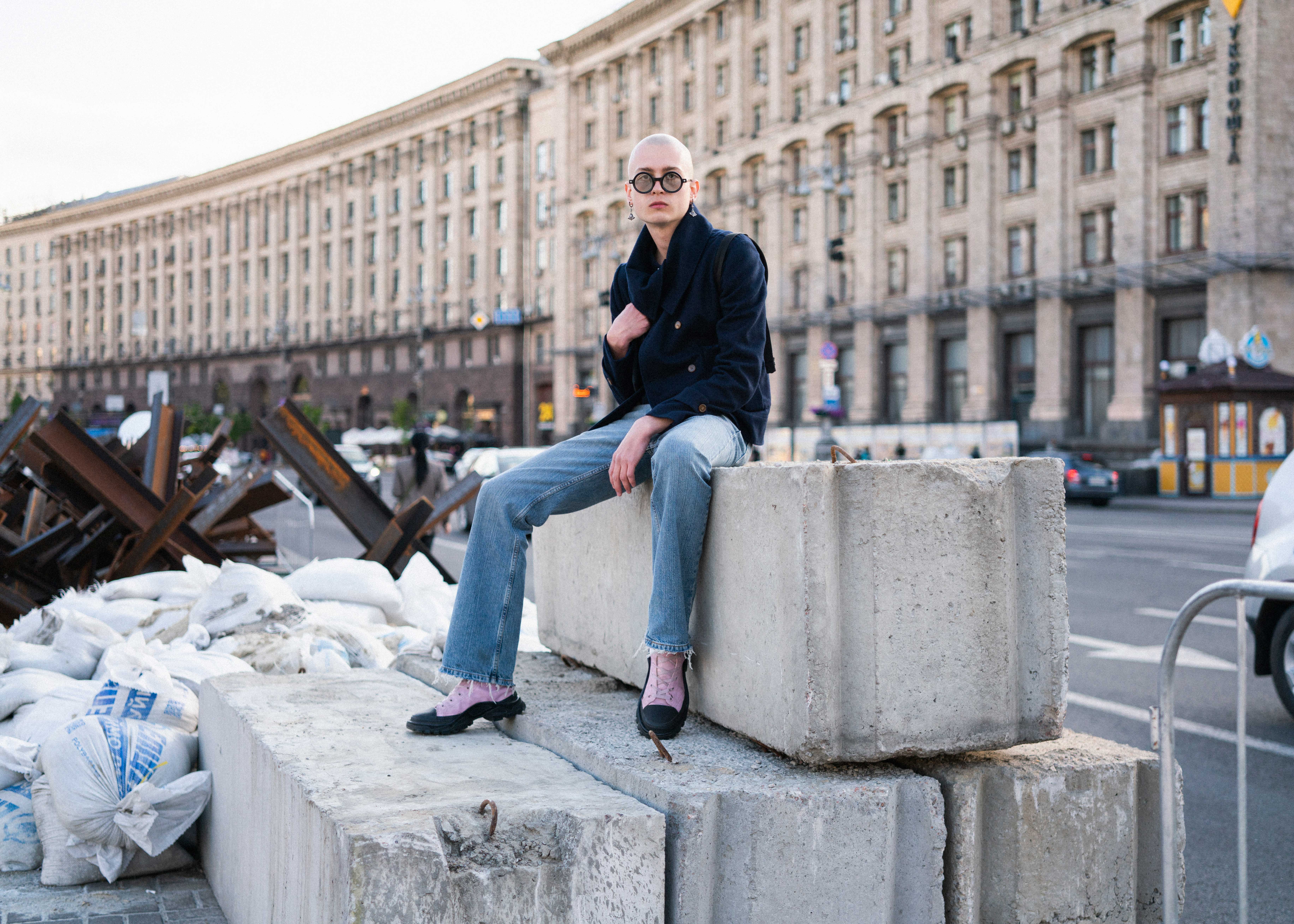 キエフの街中に積み上げられた土嚢と若いウクライナ人アーティスト。Photo:Sebastian Wells,Vsevolod Kazarin